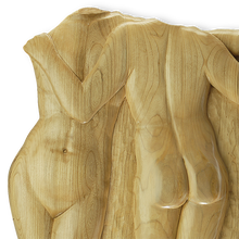 A fabulous hard wood carving depicting the Three Graces, the ancient Greek personifications of charm, beauty and creativity, all abundantly represented in this extraordinary Renaissance style wall relief.