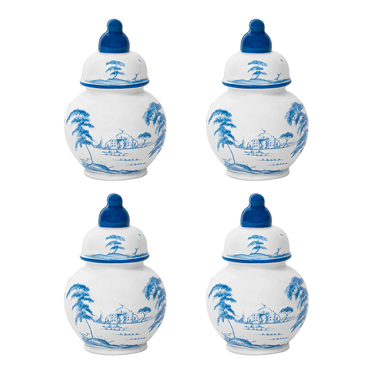 Exquisite miniature ginger jars with illustrated scenes from our Country Estate in Delft Blue make this set of place card holders equally traditional, elegant and charming. Each piece is slotted at the top to hold one card—the perfect finishing touch for casual or formal table settings alike. Gift boxed.