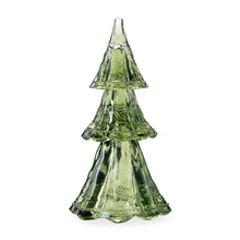 Perfect for embellishing holiday tables or mantles, these striking evergreen glass trees feature Berry & Thread decoration. This set of five pieces includes the mini, small, medium, large and extra-large tree tiers, which may be used individually, as small groups, or as one large stacked set.