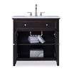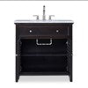 Crafted from Mahogany solids, this sink chest features louvered doors with solid brass pulls. A Carrera marble top includes an installed porcelain sink bowl.