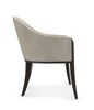 Warm and welcoming in a silver textured woven, this dining chair invites guests to linger around the table. Comfortably curved with a refined barrel back, it features sloping slim arms, accentuated by a faceted post in a richly contrasting Dark Chocolate finish. A classic seating silhouette that compliments today’s dining interiors with effortless elegance.